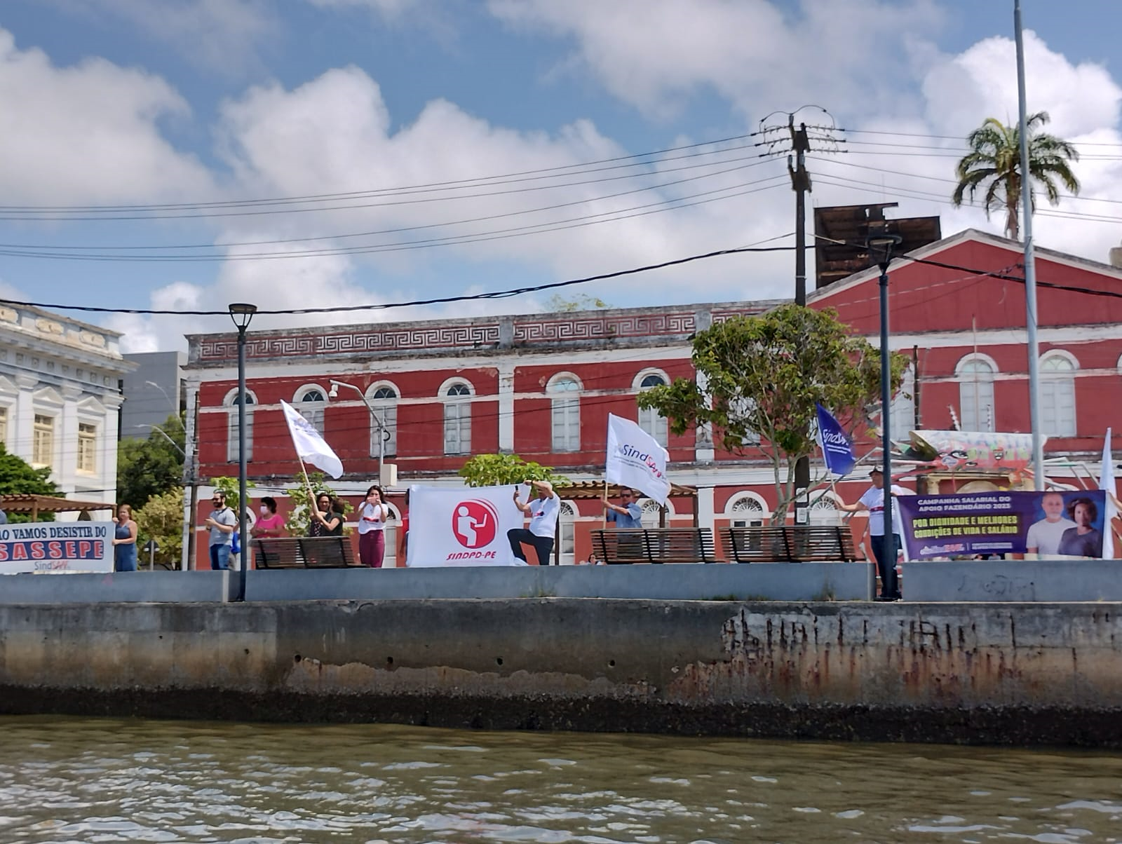 Empregados da ATI aguardaram a chegada da Barqueata, que aconteceu em frente ao antigo prédio da Assembleia Legislativa de PE, na Rua da Aurora.