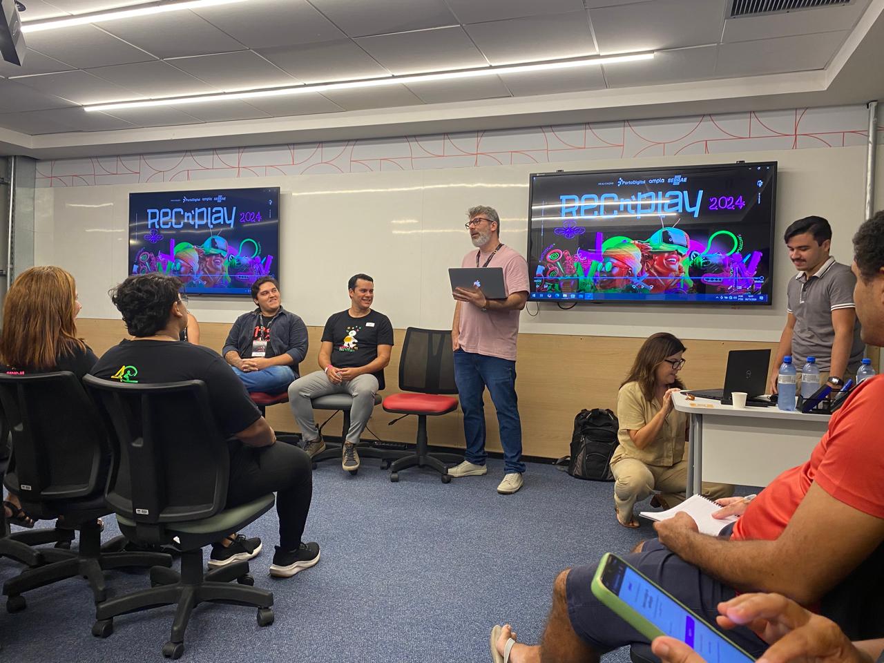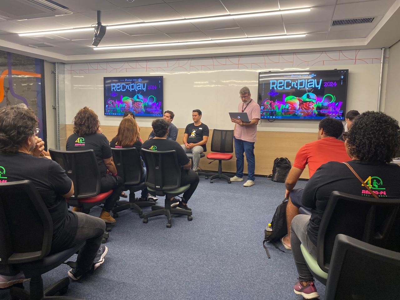 Contribuindo com as importantes discussões e debates que ocorreram durante essa quarta-feira (6/11), primeiro dia do REC `n`Play, o presidente do SINDPD-PE, Reinaldo Soares, participou de uma Roda de Conversa sobre Trabalho Digital e Práticas de Resistência.